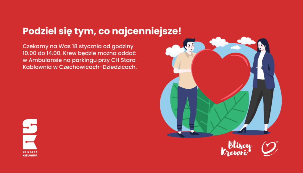 Dzień dobry, już 18 stycznia zapraszamy Was na akcję krwiodawstwa do Stara Kablownia w Czechowicach-Dziedzicach! ☺️
