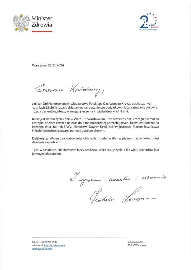 Drodzy Krwiodawcy,